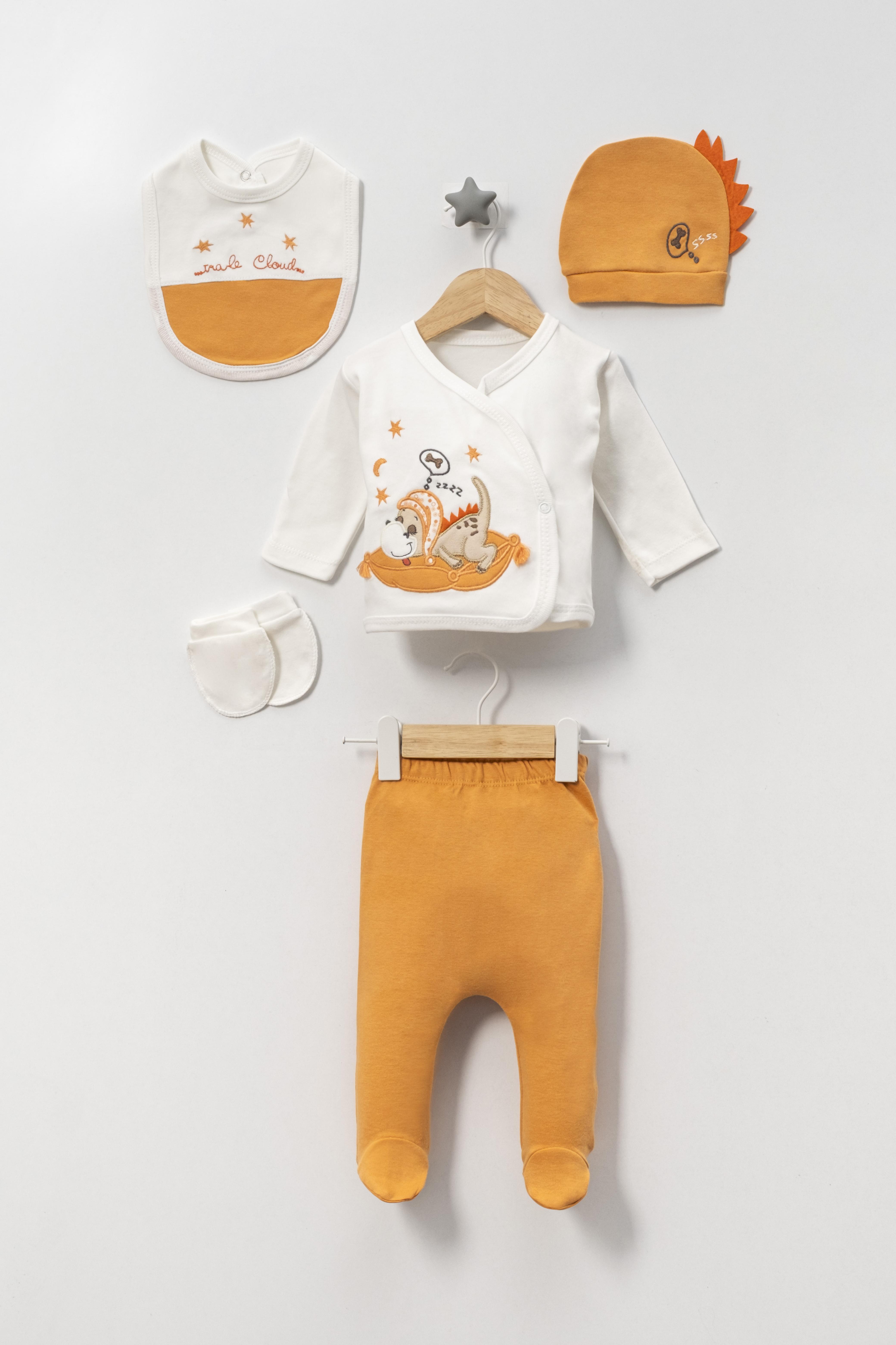 100% Pamuklu Sevimli Dinozor 10'lu Yenidoğan Hastane Çıkışı Zıbın Seti