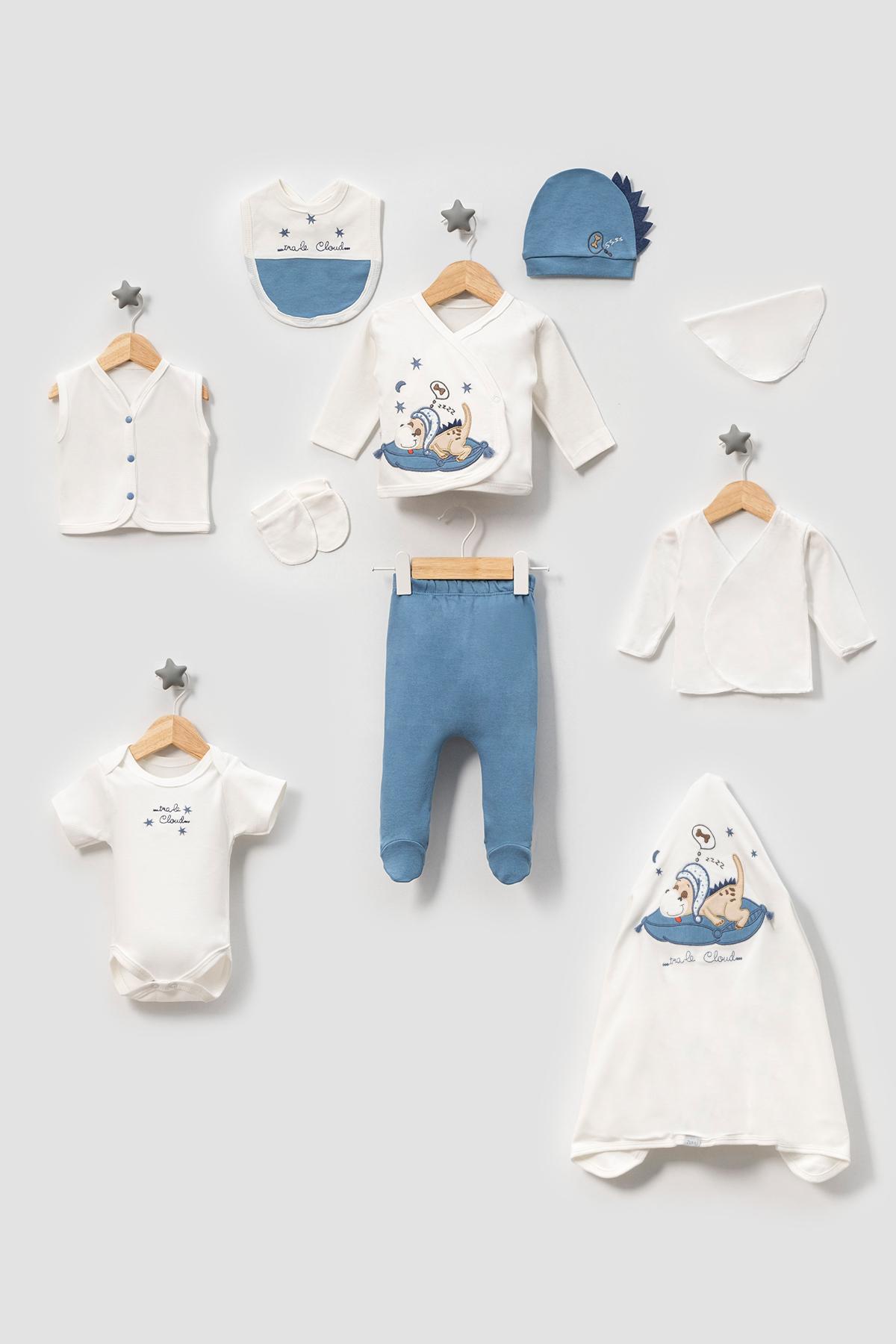 Sevimli Uyuyan Dinazor 10'lu Yenidoğan Hastane Çıkışı Zıbın Seti, yeni doğanınızın konforu ve şıklığı için özel olarak tasarlanmıştır. Bu set, bebeğinizi hastaneden çıkarken veya evde ilk günlerinde giydirmek için ihtiyaç duyduğunuz her şeyi içinde barındırır. Hem fonksiyonel hem de şık olan bu zıbın seti, yeni ailelere büyük kolaylık sağlar.
